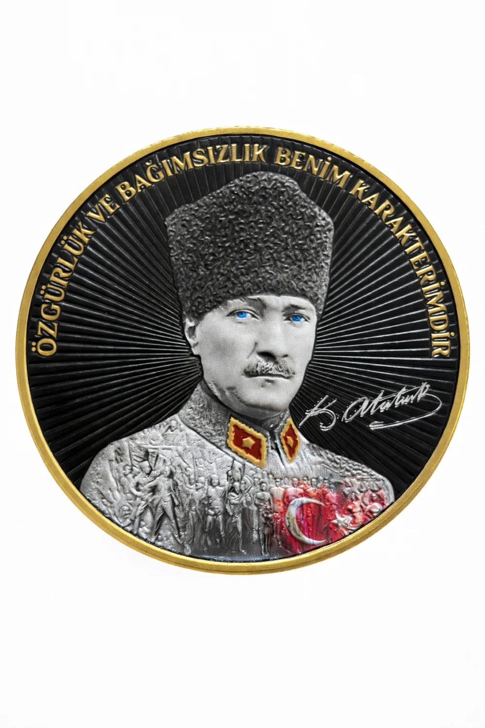 Türkiye Cumhuriyeti’nin kurucusu Mustafa Kemal Atatürk’ün imzasını taşıyan, anlamı ve duruşu güçlü özel bir tasarımdır. Cumhuriyet değerlerine bağlılığı ve Atatürk ilke ve inkılaplarını simgeleyen bu arma, hem günlük kullanım hem de koleksiyon için idealdir. Cırtlı (velcro) arka yüzeyi sayesinde üniforma, mont, taktik yelek, çanta ve ekipmanlara kolayca takılıp çıkarılabilir. Yüksek kaliteli nakış/dokuma üretimi ile uzun ömürlüdür; renk solması ve deformasyona karşı dayanıklıdır.
