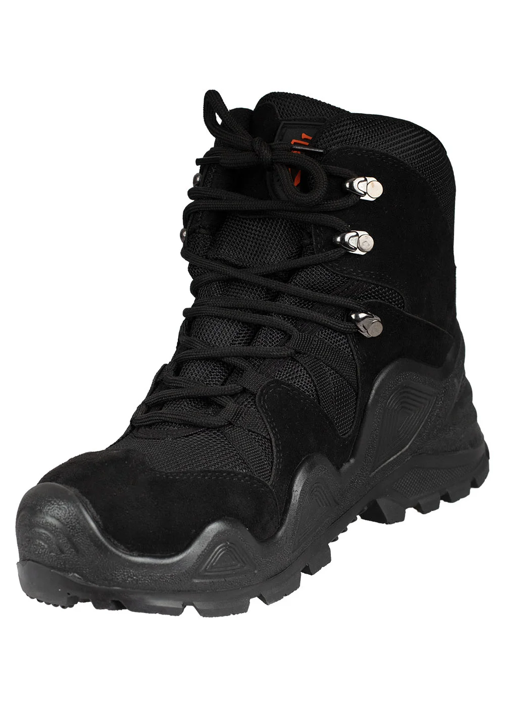 Bu yüksek bilekli, tamamen siyah bot, zorlu arazi koşulları ve günlük outdoor aktiviteler için özel olarak tasarlanmıştır. Temel Özellikler: Dayanıklı Yapı: Süet ve nefes alabilir file kumaş kombinasyonu, hem dayanıklılık hem de konfor sunar.Yüksek Performans: Kalın, tırtıklı dış taban, engebeli yüzeylerde üstün çekiş ve zemin tutuşu sağlar.Destek ve Koruma: Yüksek bilek tasarımı, ayak bileğine gerekli desteği vererek burkulma riskini azaltır ve taşlık arazide koruma sağlar.Kolay Bağlama: Hızlı bağcık geçişi sağlayan metal halkalar, botu ayağa tam oturtmayı ve kolayca giyip çıkarmayı mümkün kılar.Çok Yönlülük: Taktik, askeri, yürüyüş, kamp ve ağır hizmet işleri gibi çeşitli kullanımlar için idealdir.